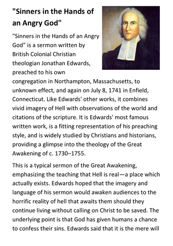Sinners In The Hands Of An Angry God Handout Teaching Resources